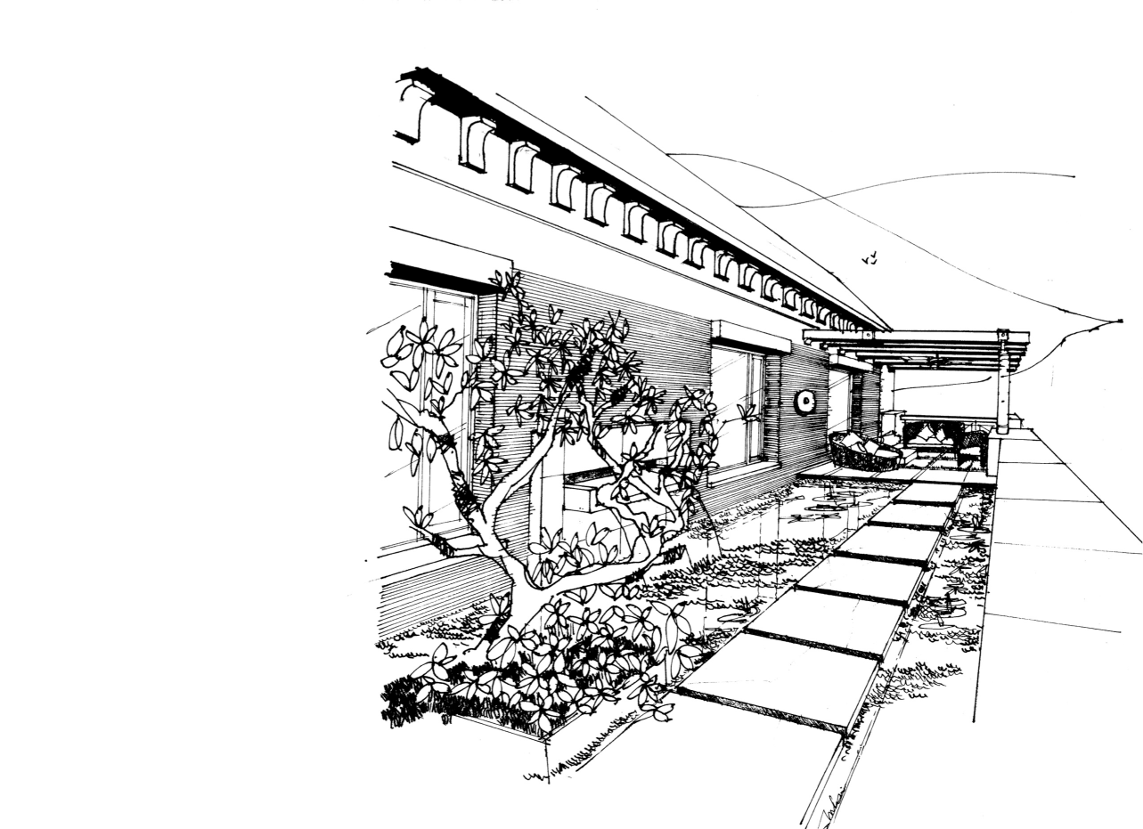 Due to limited open spaces around the plot, the house was designed as an introverted volume, with a dramatic paludarium in the main lobby offering glimpses into the living areas and introducing a tactile, natural element into the core of the home.