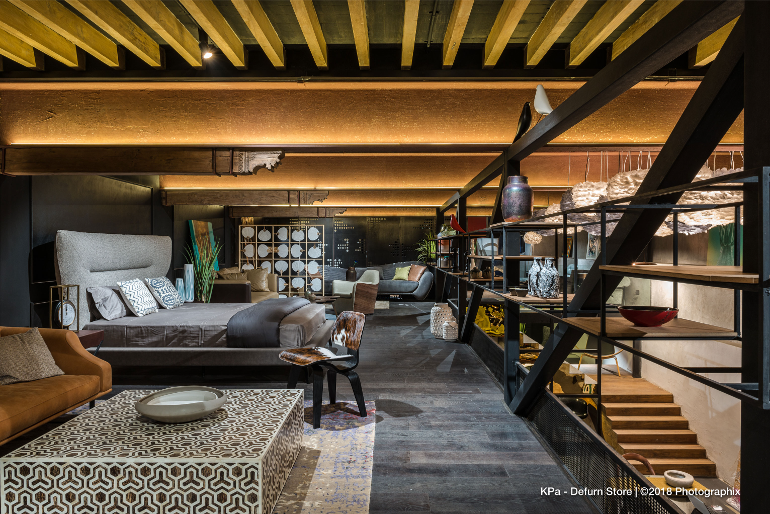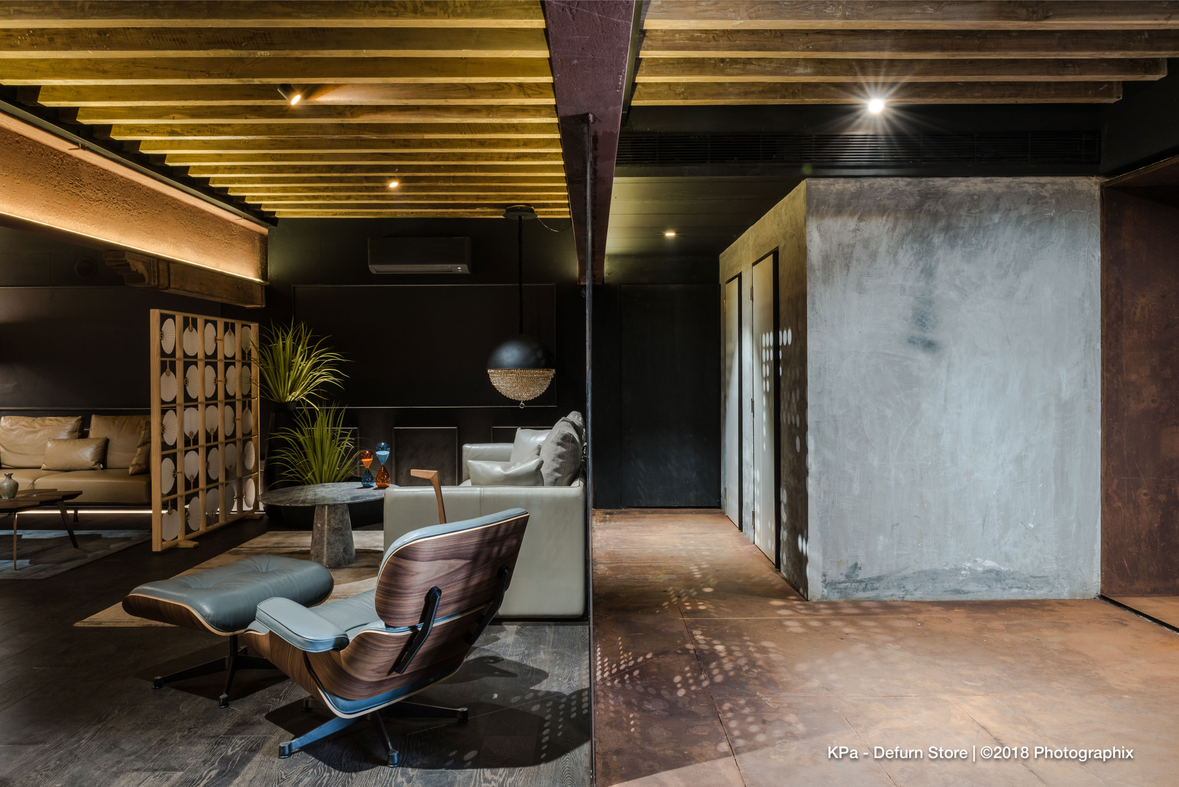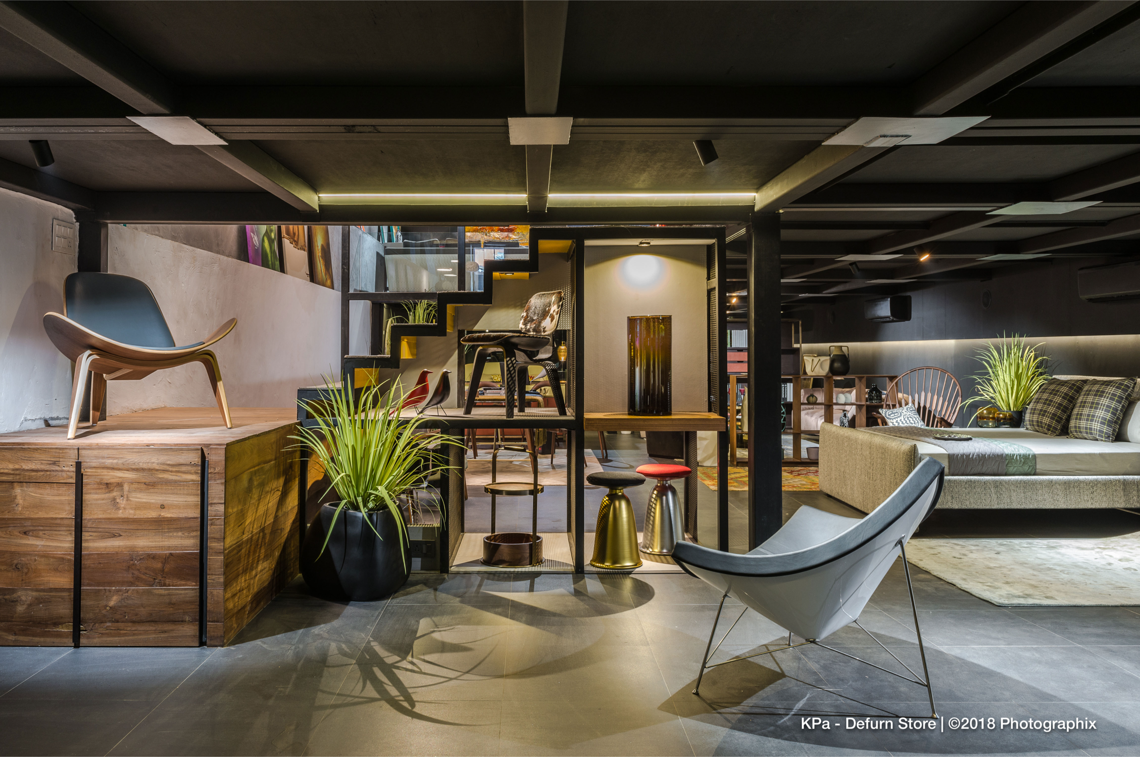 Throughout the store, the design balances industrial rawness with curated refinement—a fitting backdrop for DEFURN’s diverse inventory of high-end furniture and accessories. Every architectural gesture is purpose-driven, seamlessly integrating structure, branding, and experience into a unified retail journey.
