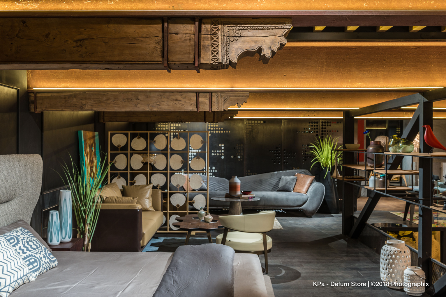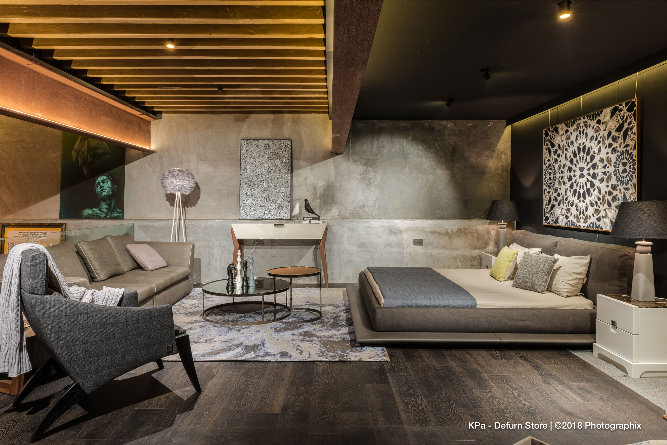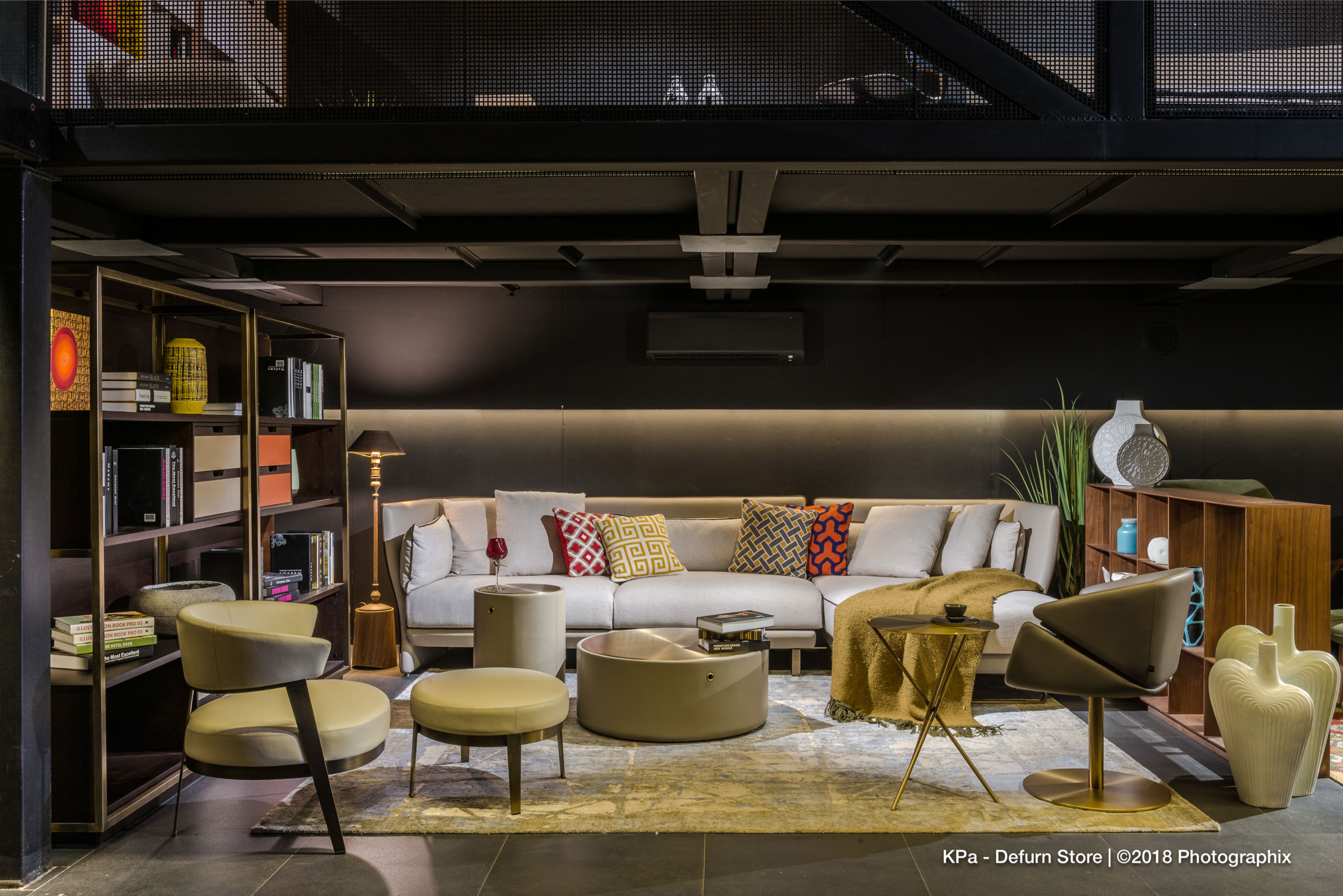 Throughout the store, the design balances industrial rawness with curated refinement—a fitting backdrop for DEFURN’s diverse inventory of high-end furniture and accessories. Every architectural gesture is purpose-driven, seamlessly integrating structure, branding, and experience into a unified retail journey.