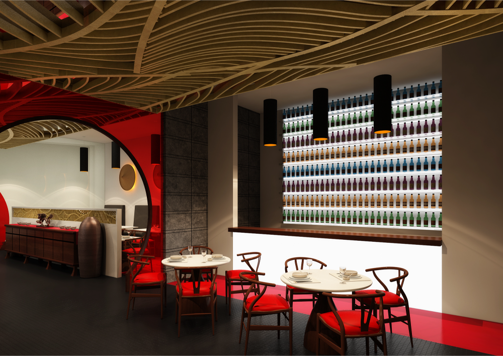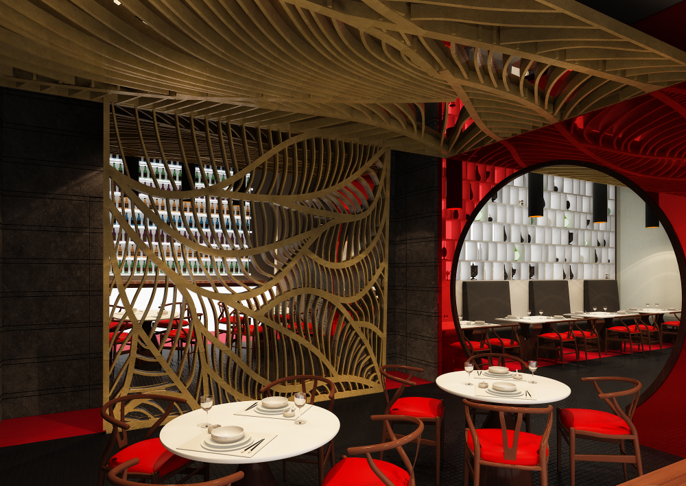 Designed to be both immersive and inviting, this space is a bold reinterpretation of Asian hospitality—where tradition flows seamlessly into the contemporary through form, light, and material craft.