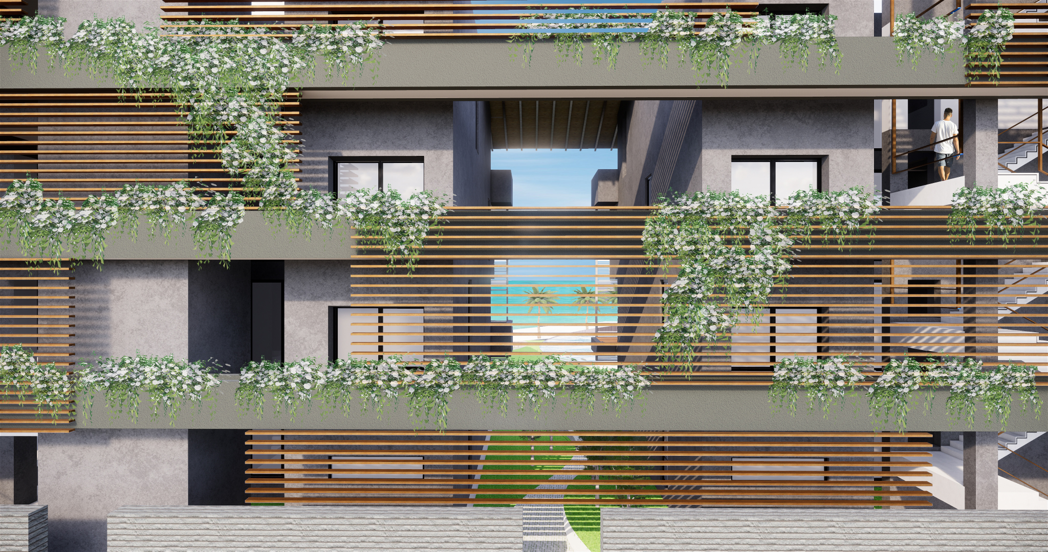 A unique feature of the design is the interconnected rooftop terraces, transforming typically underutilized spaces into vibrant community zones. These elevated platforms double as venues for sunset gatherings, yoga sessions, or private celebrations, promoting interaction among residents while enjoying sweeping ocean views.