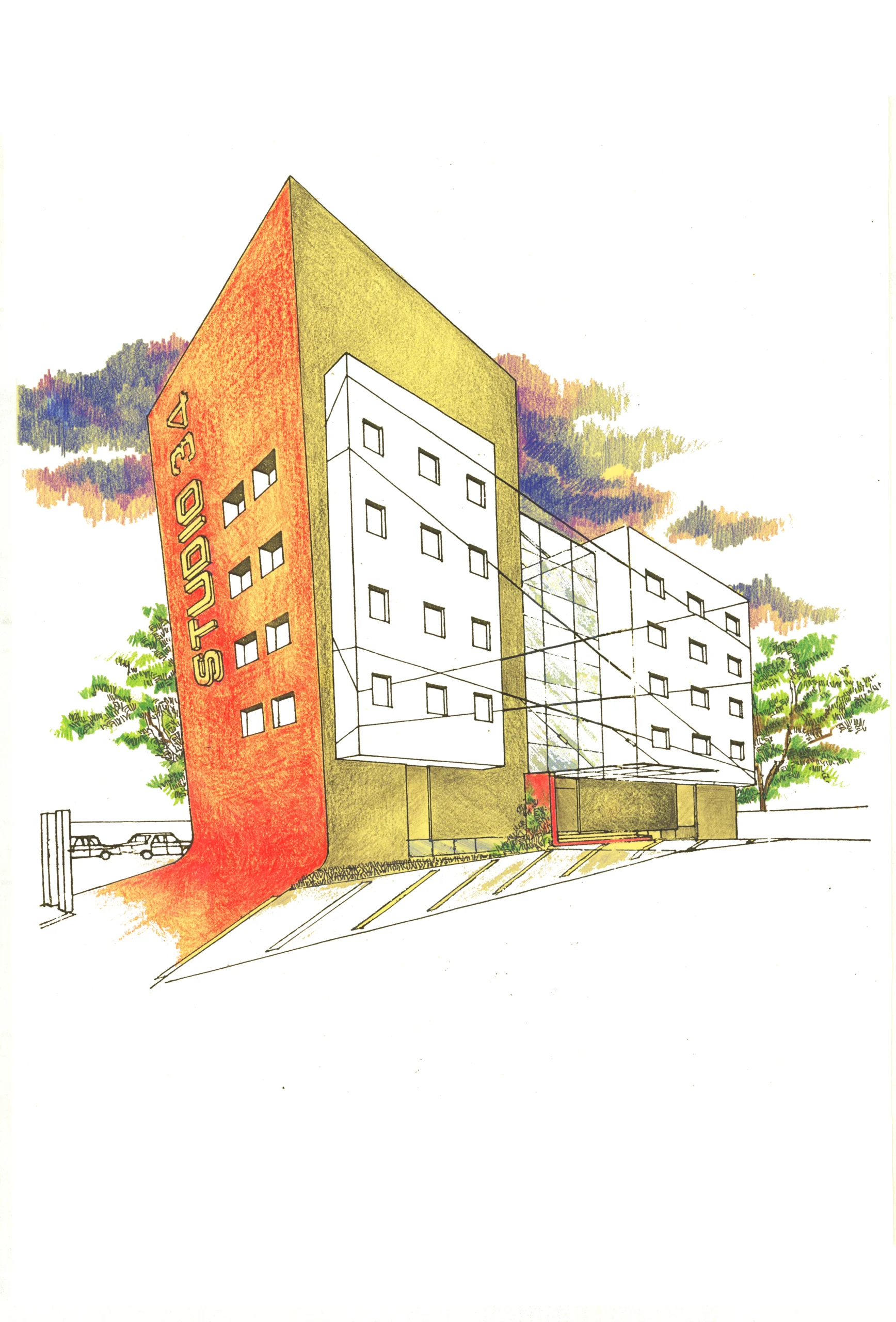 Each floor of the hotel was designed with a unique theme, offering varied room experiences, while the rooftop was envisioned as a public terrace café — a vibrant social hub open to all, crowning the building with energy and openness.