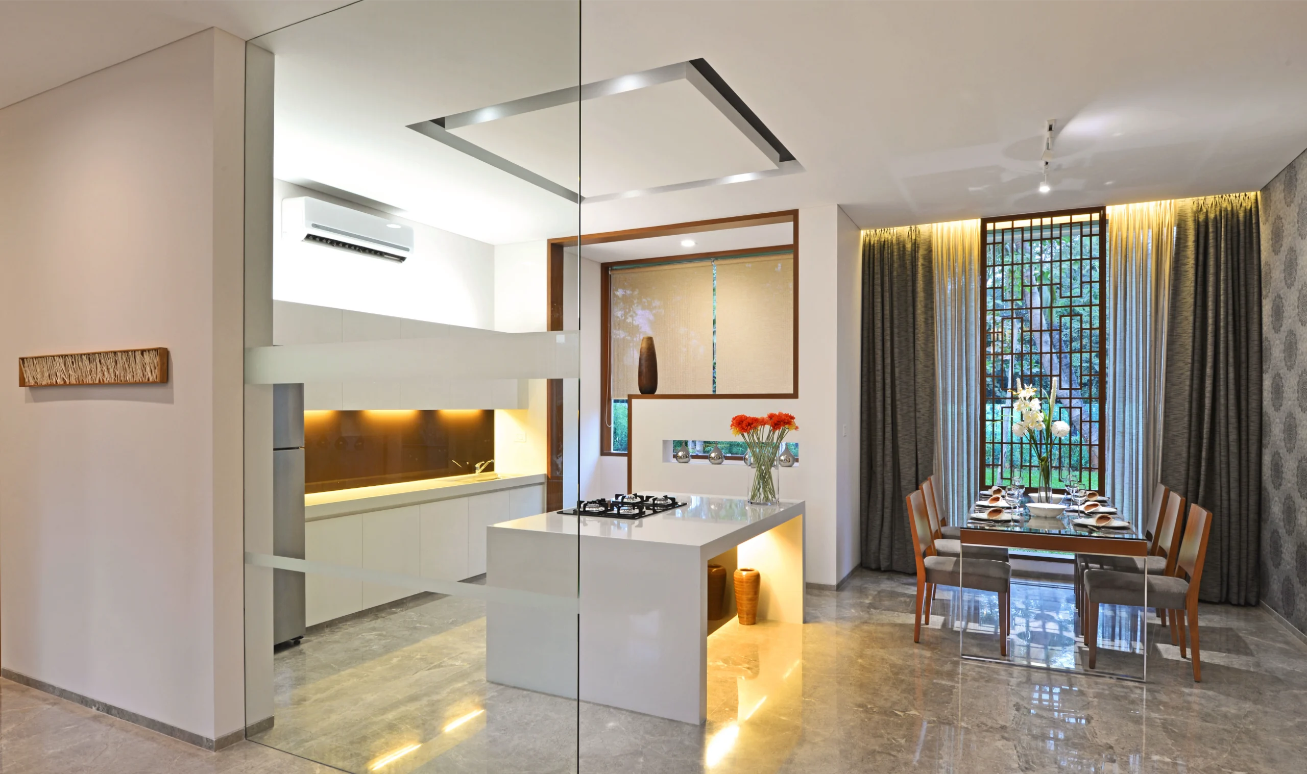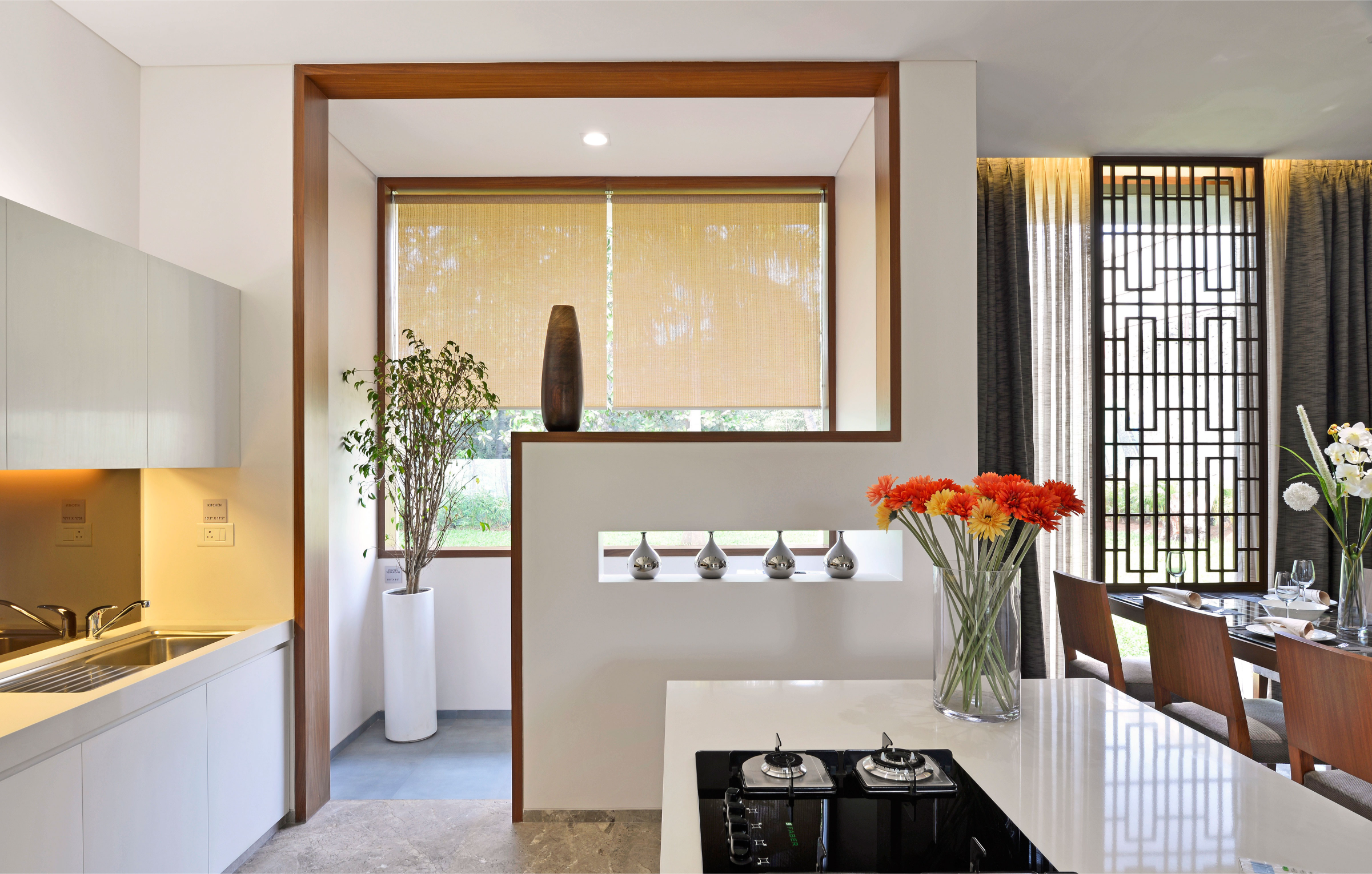 Rajesh Lifespaces sought a four-bedroom show home that embodied the ethos of their larger development—clean, contemporary, and grand—without losing its grounding in function and familiarity. Each space was thus carefully curated to feel distinct yet cohesive, exuding warmth and welcome while subtly encouraging a sense of aspiration.